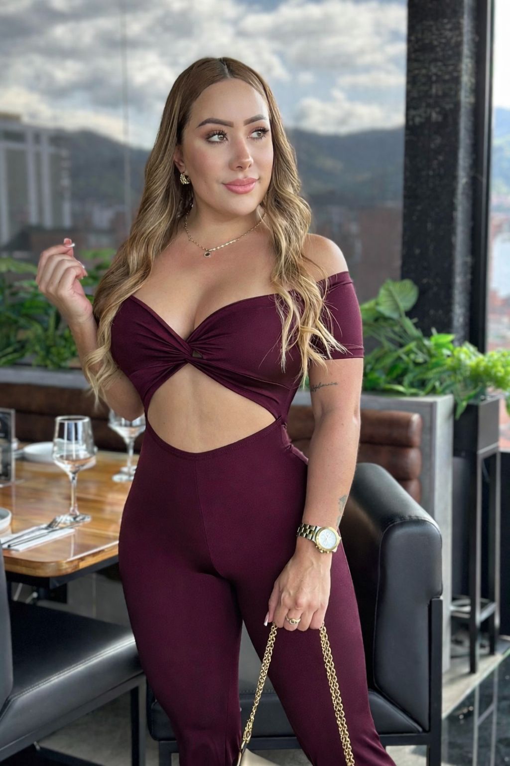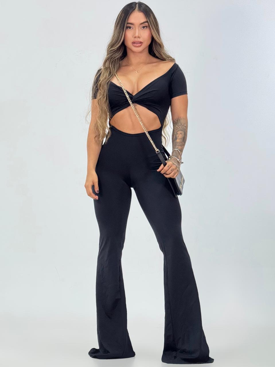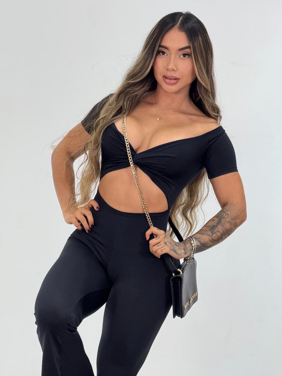 Este enterizo es sinónimo de actitud y sensualidad. Con un diseño cut-out en la parte frontal y escote cruzado que realza el busto, combina a la perfección comodidad y tendencia. Su silueta ajustada con bota campana estiliza la figura, ofreciendo un look moderno y poderoso.