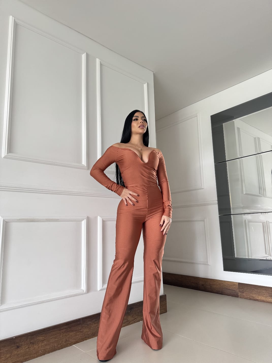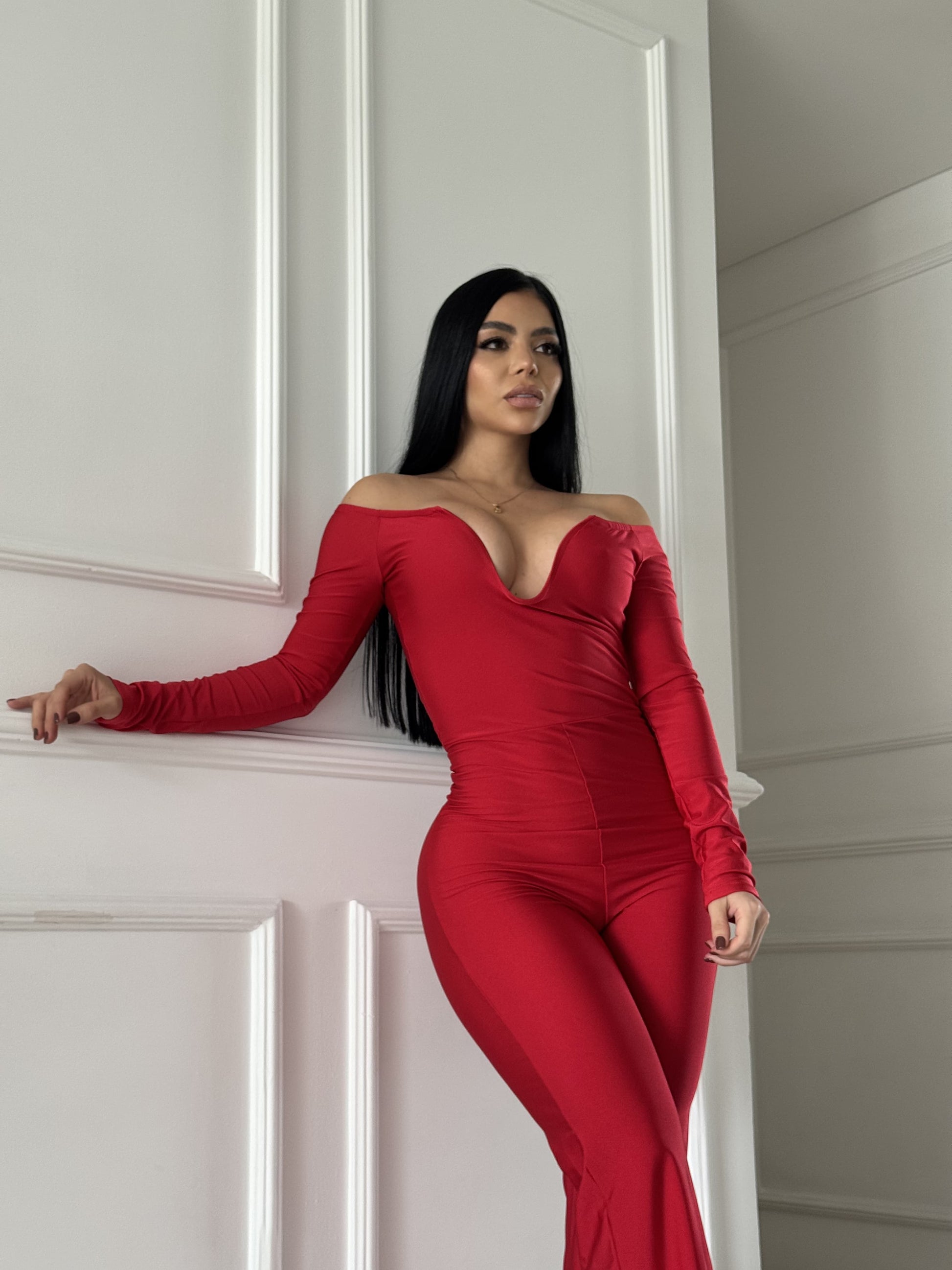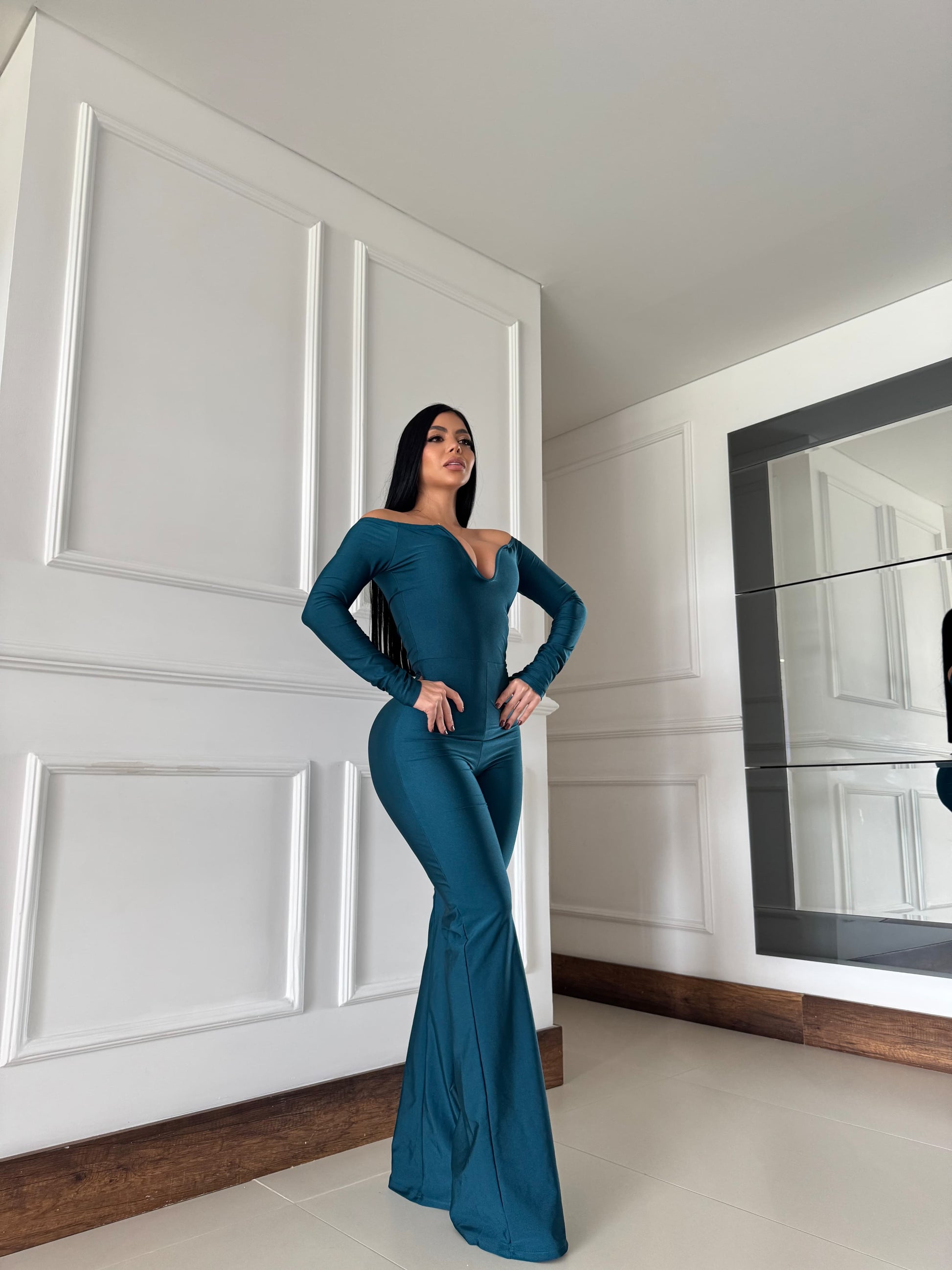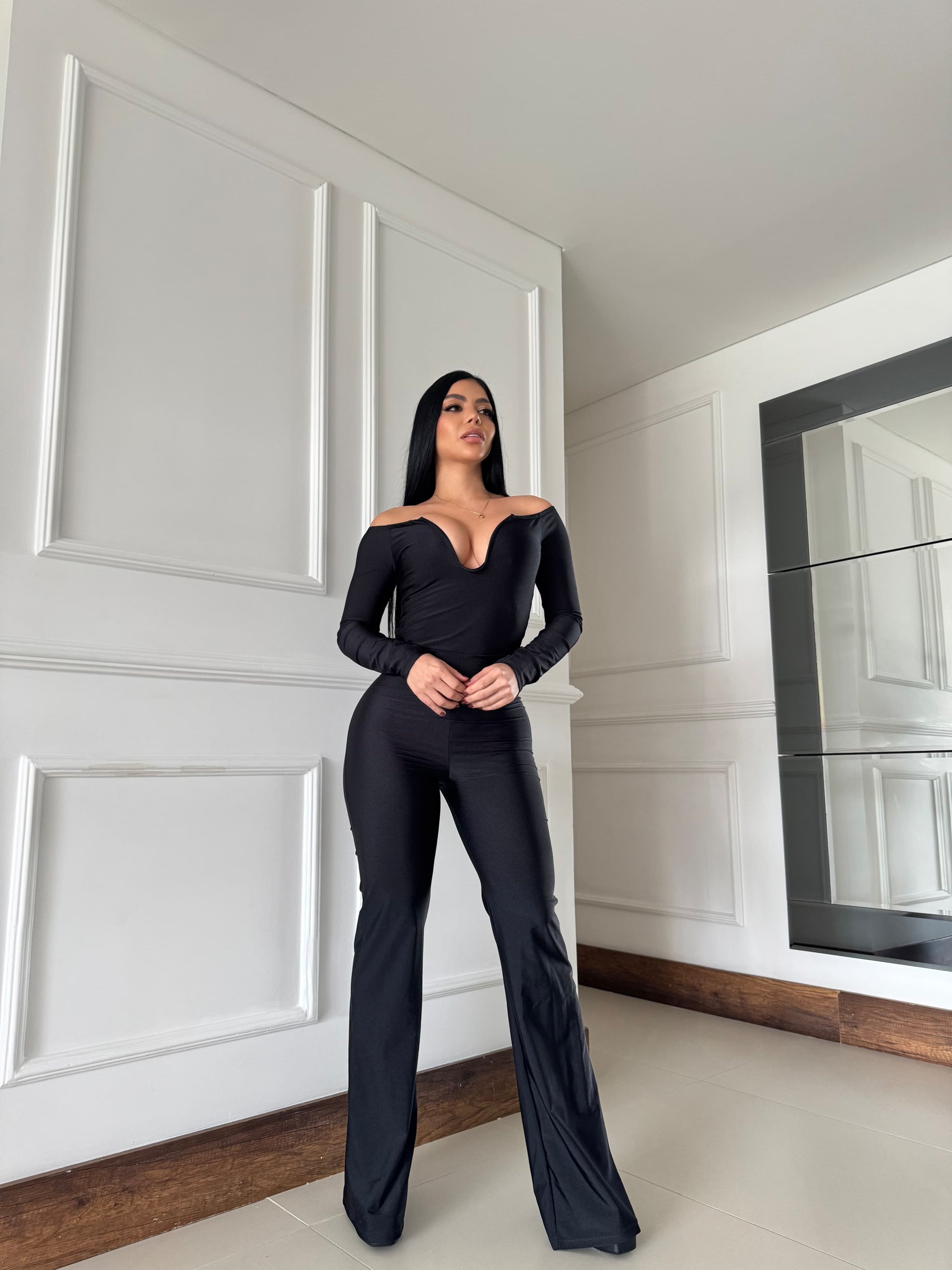 Este enterizo en distintos tonos es clásico combina lo mejor del estilo elegante con un diseño seductor. Su escote tipo corazón con hombros descubiertos realza el busto, mientras que la silueta ajustada y bota campana estilizan la figura al máximo. Perfecto para eventos de noche, cenas o salidas donde quieras imponer presencia con glamour.